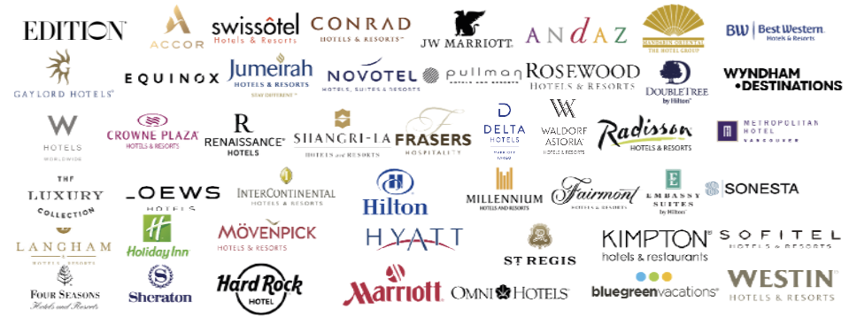 - Stærk leverandørpartner til Marriott, Hilton, Hyatt, Best Western, InterContinental, Accor og andre – Renue er det eneste firma, der opretholder alle disse relationer på verdensplan. Vi betjener også lokale mærker.